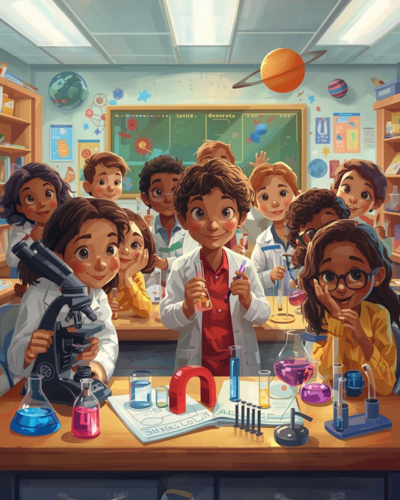 The age group of 11 to 15 years is one of the most important stages for developing interest in science. During this period, students start learning important topics such as: electricity and circuits, magnetism, force and motion, chemical reactions, acids and bases, density and pressure.